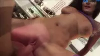 In this wild and exciting sex video featuring the promiscuous brunette, the story begins in a dirty and dimly lit workshop.As the horny brunette walks into the room, her perky boobs straining against her tight fishnet shirt, she knows exactly what kind of adventure awaits her.The brunettes eyes wander over to the muscular man working on his machinery, sweat dripping from his tanned and toned body.As he catches her gaze with a smirk on his face, their eyes lock, and the chemistry is palpable in the air.The man downs his tool and steps forward, adjusting his dirty mechanics gloves as his thick cock strains against his dirty jeans, begging for release.The brunette drops to her knees without hesitation and starts by sucking his balls with fervor, slurping away at the sweaty sacks like they were the tastiest treat shed ever had.She loves giving blowjobs, swallowing as much of that cock as she possibly can before it throbs in her throat.With a nod of approval from the man, she then swallows his rockhard prick, deepthroating with such skill, she makes his eyes roll into the back of his head and his sperm ready to spray.The brunette is insatiable, as the man starts to fuck her face faster and harder.She takes it like a champion, gagging herself on the cock that has turned wild and uncontrollable in her mouth.As she reaches climax through her blowjob prowess, the woman decides to take control of their sexual adventure.She rips off her tight fishnet shirt, revealing her firm and tanned body with piercing nipples standing at attention on her chest.The man is left stunned by her beauty, as his sperm flows down the sides of his throbbing cock.The brunettes cunt is soaked from the anticipation of being taken doggystyle, and she spreads her ass cheeks wide open for the man to insert his prick deep inside her pussy, while also licking her own slit as she pleasures herself with her fingers.The feeling of the mans cock in her cunt and the taste of her juices on her fingers gives her a wild and horny sensation that only increases her craving for more pleasure.As the man thrusts harder and harder, his hands digging into the brunettes hips and ass, she can feel the warm sperm inside her cunt and tastes her own pussy juice while she masturbates herself with her fingers.She moans louder, urging him on as he fucks her wildly in this provocative display.The sound of her cunt lips smacking against his cock drives him into a frenzy, and soon enough, the man lets out a grunt, his hot sperm shooting deep inside the brunettes eager cunt, filling it up to the brim.Exhausted and satisfied from this wild sexual adventure, they both lay on the dirty workshop floor, basking in each others afterglow and the thrill of their forbidden passion, as the brunette starts counting her adventures with anyone she meets, looking forward to the next wild encounter.